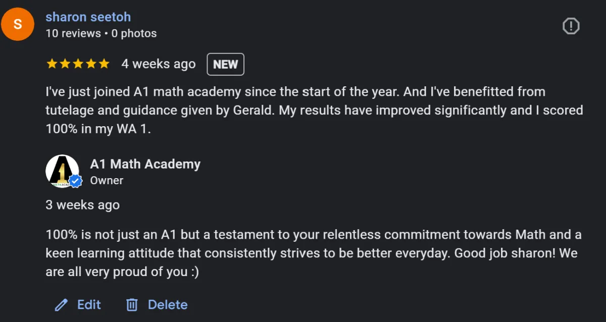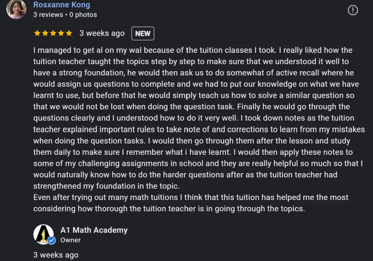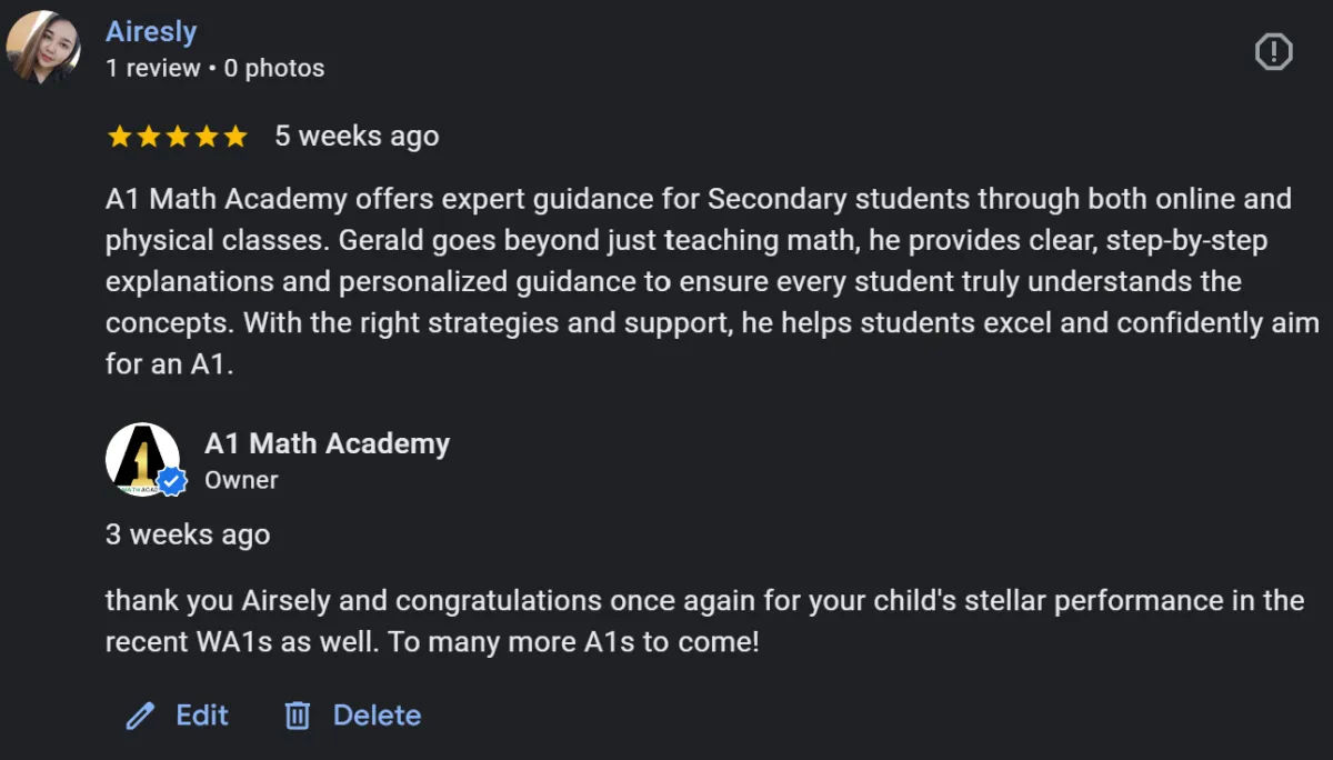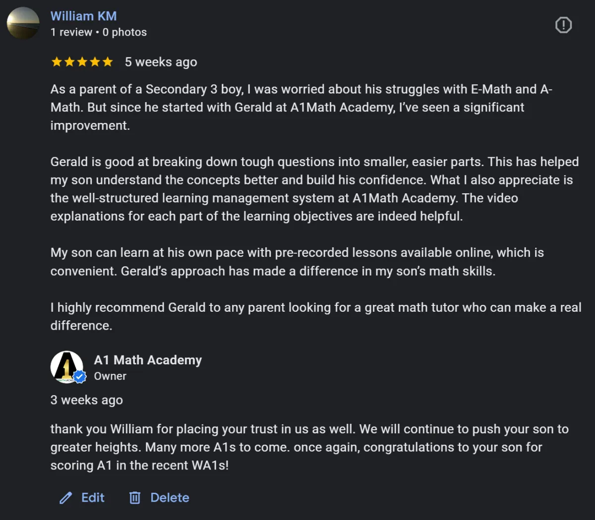 Each backed by my YEARS OF EXPERIENCE of scoring As for Math like clockwork and helping my own students at my A1 MATH ACADEMY centre do the same.